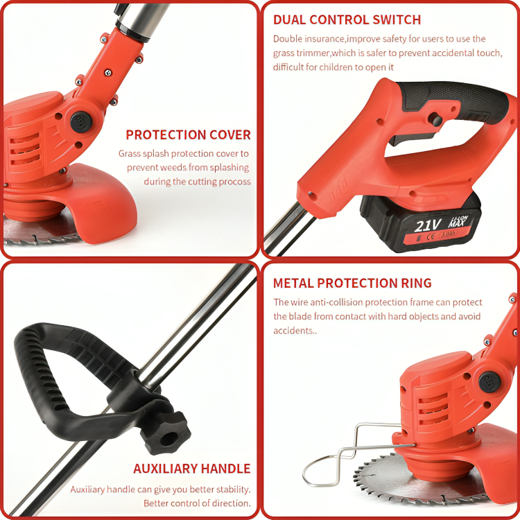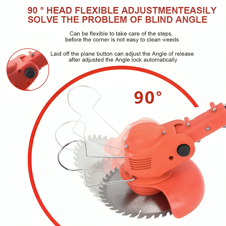 Upgrade your gardening with our Three Blades Grass Trimmer! This cordless tool has blades for all your needs, from young grass to thick branches, with a protective cover to prevent weed splashes. Its adjustable rod (88cm to 120cm) ensures comfort, and the lightweight design makes it easy to use. With safety features and a power display, you can trim your lawn anywhere without wires. Enjoy hassle-free gardening, and count on our friendly customer service for any questions!