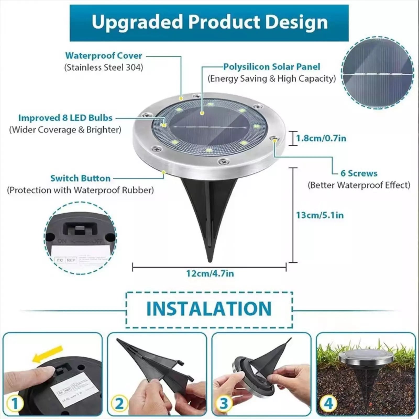 The Solar Ground Light Pack offers a perfect blend of style, functionality, and eco-friendliness for your outdoor lighting needs. With easy installation, zero electricity costs, and the benefit of automatic dusk-to-dawn operation, these lights are an excellent investment for homeowners looking to enhance their outdoor spaces with minimal effort. Illuminate your garden, pathways, and driveways while reducing your carbon footprint—order your Solar Ground Light Pack today and enjoy the beauty and convenience of solar lighting!
